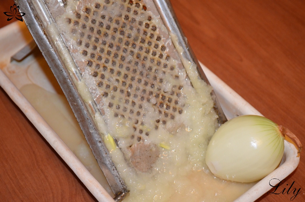 Луковицу натереть на мелкой терке.